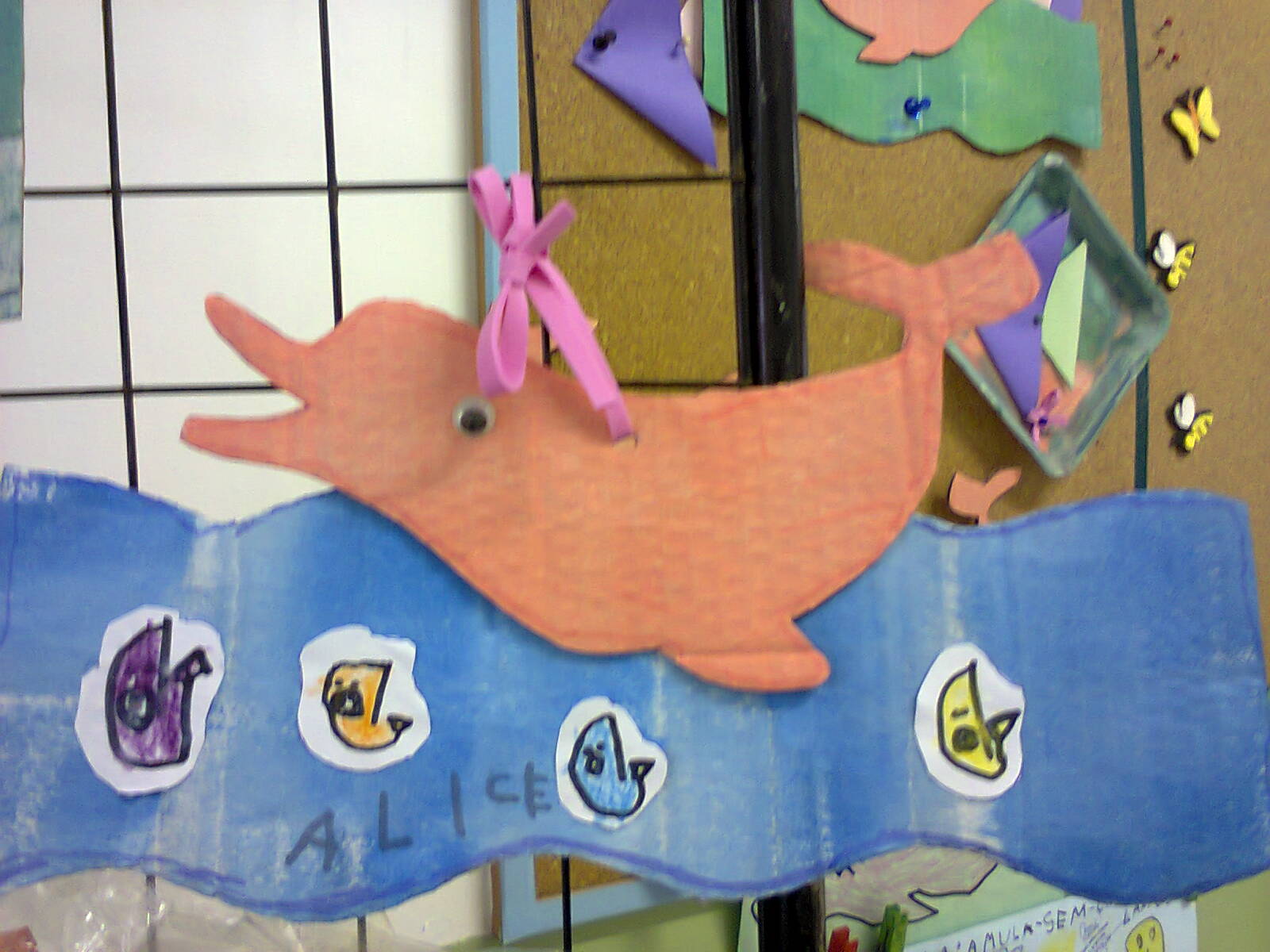 *15 de agosto - Boto cor-de-rosa confeccionado com papelão para montagem de painel sobre o folclore;